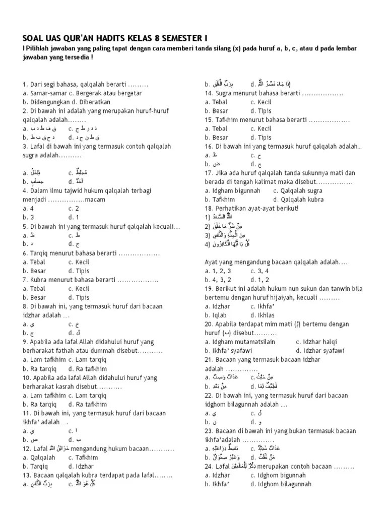 Soal Alquran Hadits Smk Semester 2 : Contoh Soal Hots Quran Hadits / Journal of civil engineering and vocational education